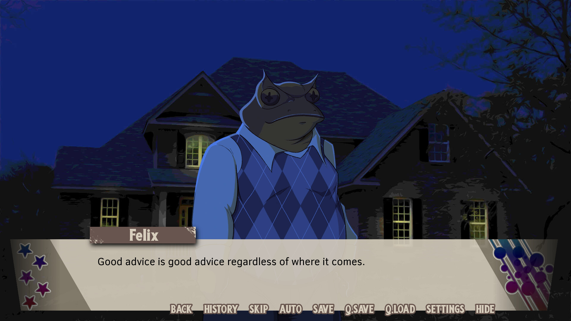 This game depicts explicit sex between father and son, derogatory terms used in a friendly manner, and usage of alcohol. All sex depicted in the game is consensual and between characters over the age of 18.