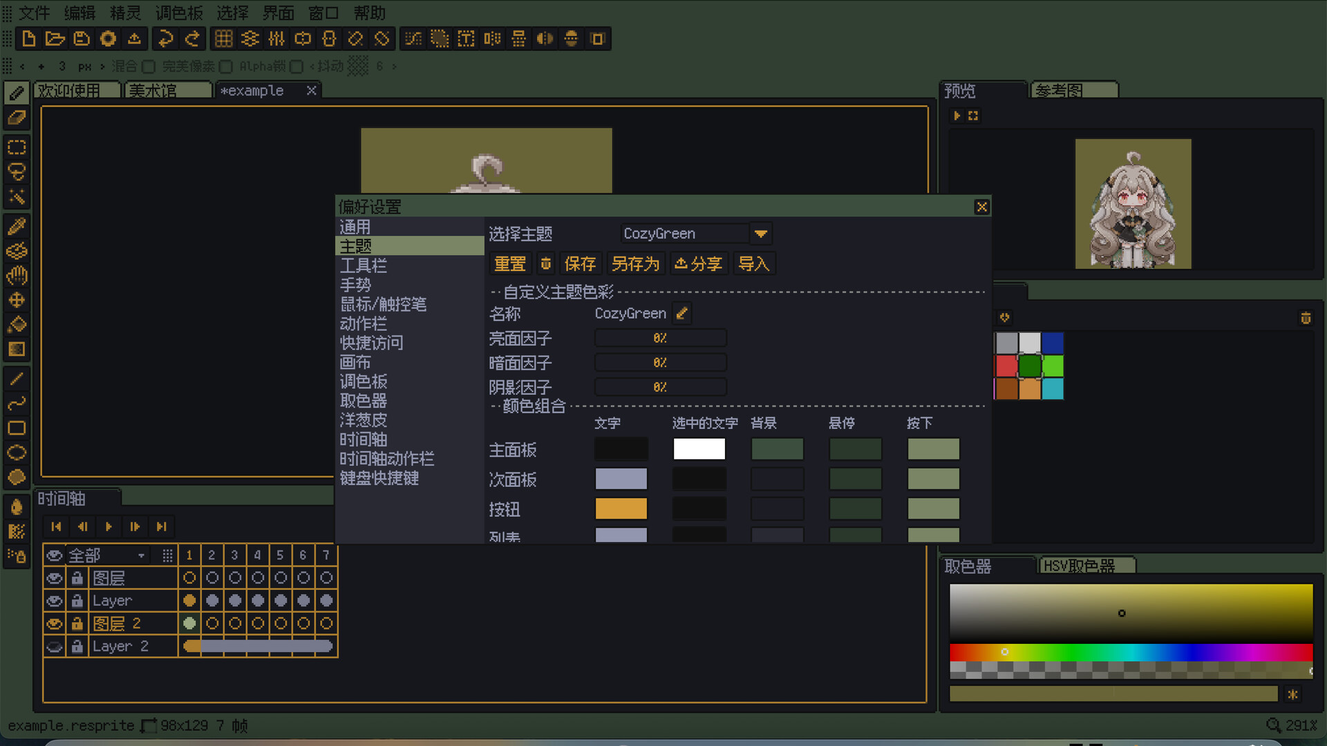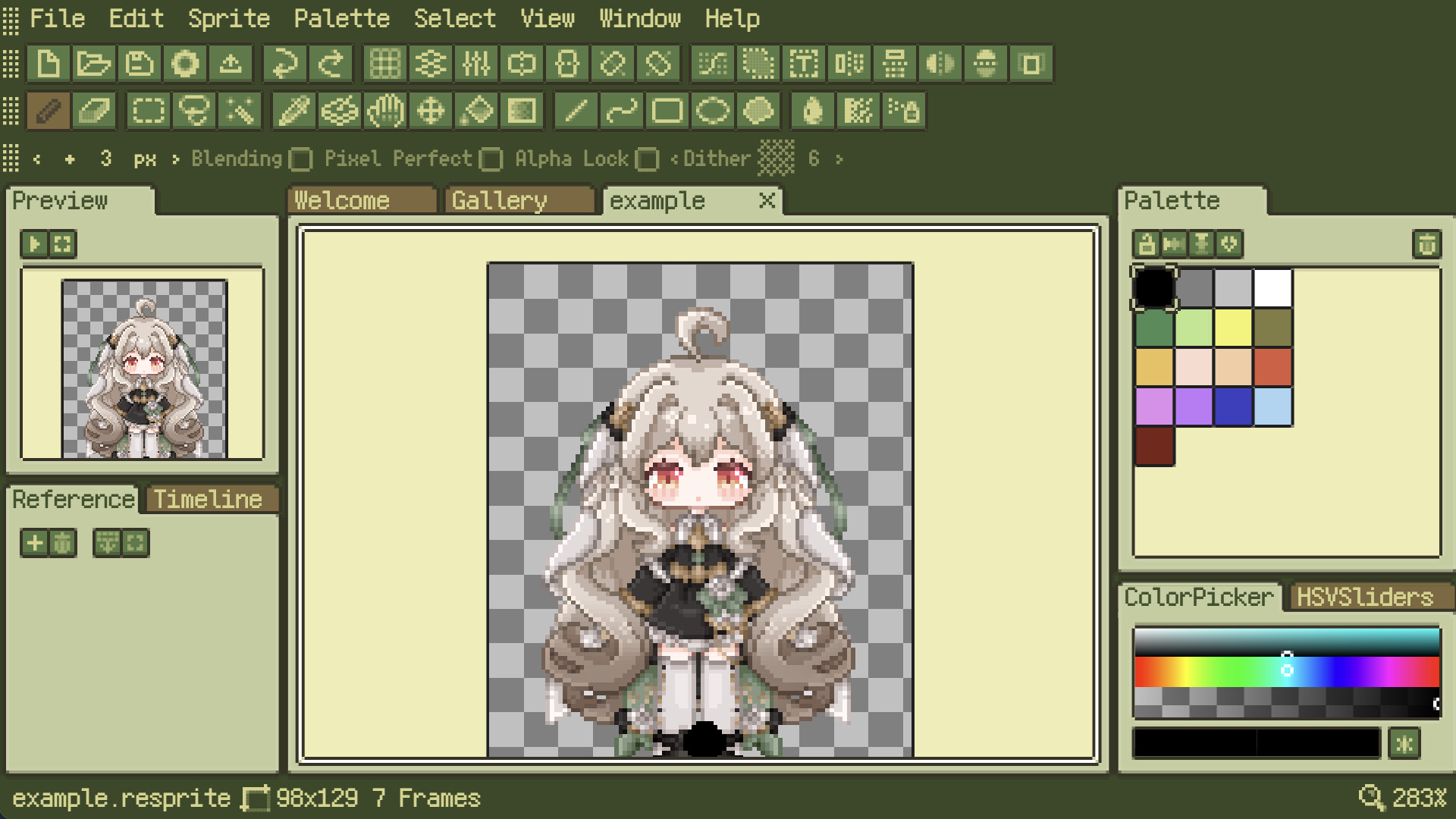 Resprite is a pixel art editor. You can use it to create game assets and animations. If you have used image editing software such as GIMP, PhotoShop, iDraw3, Aseprite, Pixelorama, etc., you can easily get started. In addition to the regular editing functions, Resprite has the following features: