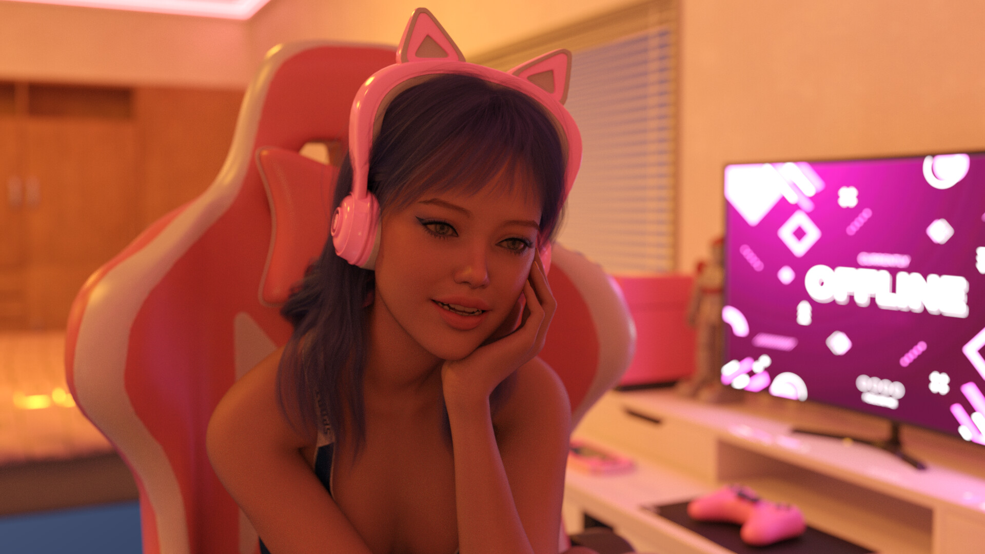 Alice: She loves playing video games and trying new things. She's always jumping on the line between social and antisocial. It's up to you to give her a lap to sit on