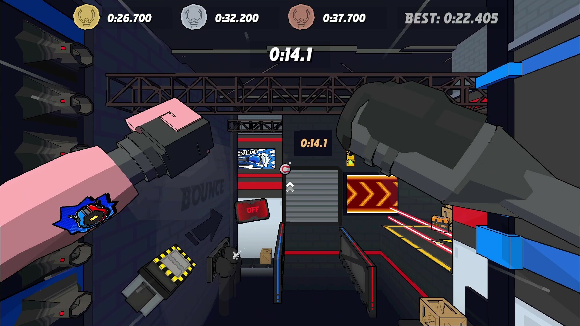 Grab and Punch your way through technical courses to top the timing boards in this fast-paced 3D action platformer.