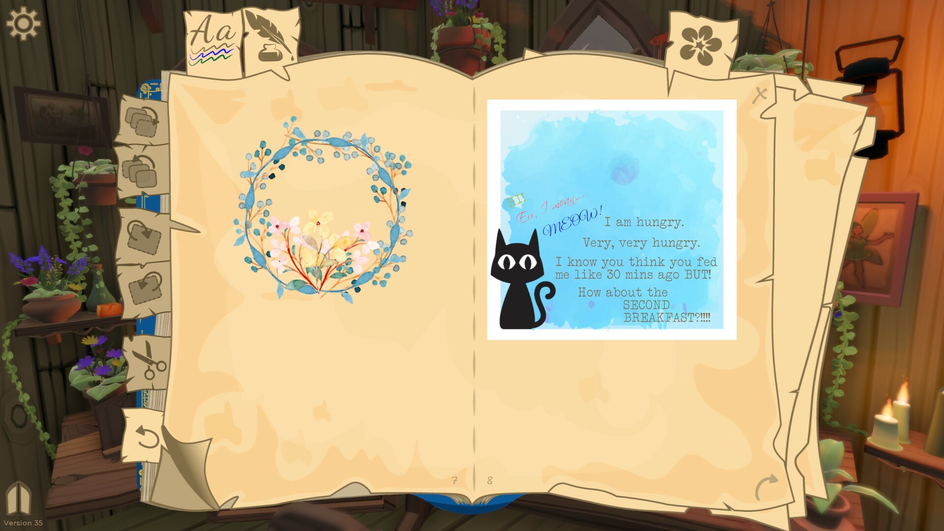 The Merry Fairy Demo contains a limited amount of features, decorations and conversations. I focused on providing an enchanted journaling experience with enough decorations to gather so that you can express a bit of scrapbook journaling creativity. I update the demo fairly regularly as I want to make sure you have a great journaling experience.