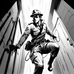 Environment & Visual Arts: Environmental assets and backgrounds have been conceptualized and generated using AI, then manually refined and stylized in high-contrast black and white to achieve a unique 'graphic novel' aesthetic.