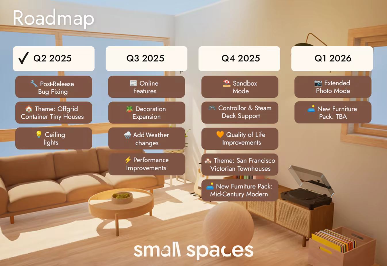 “This is a community game. Since the beginning I built this game based on your feedback and I want to continue to do so. I read all your comments and reviews and chances are your ideas change the game. Early Access will help us to continue our work full-time and stay connected with the community to make Small Spaces the best it can be.