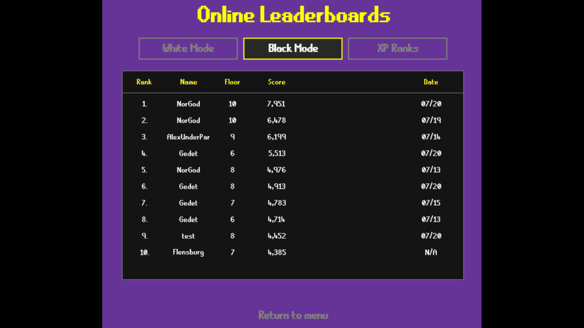 • Online leaderboards! All scores are tracked and automatically submitted to the leaderboards. There are three separate boards, one for White and Black mode, and one for overall XP, which is gained from capturing pieces and traversing through levels.