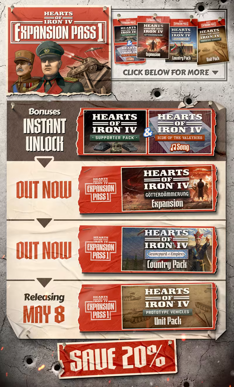 Notice: Hearts of Iron IV: Expansion Pass 1 is no longer available on the Steam store.