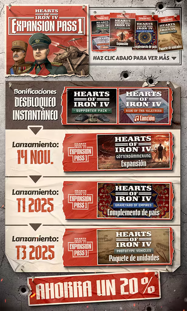 Aviso: Expansion Pass 1 Bonus - Hearts of Iron IV: Ride of the Valkyries Music ya no está disponible en la tienda de Steam.