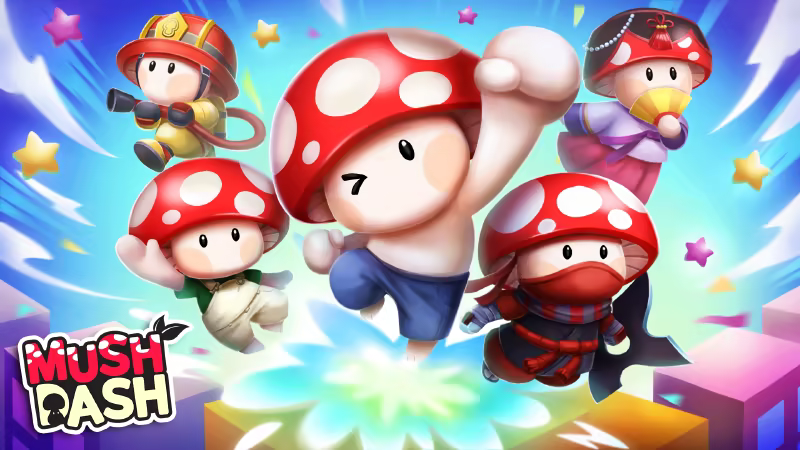 Mush Dash is an online party racing game for up to 7 players where adorable mushrooms sprint, jump and explode their way through deadly obstacle courses to avoid becoming dinner.