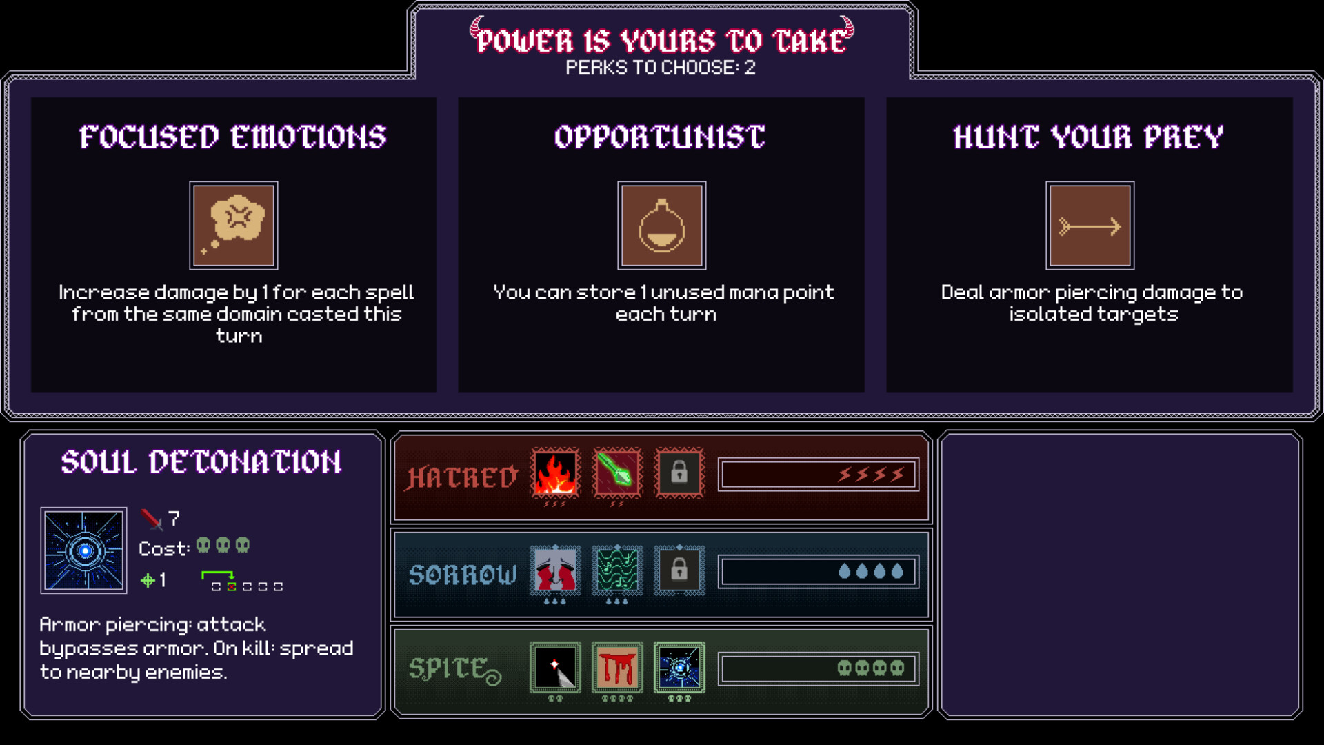 • You will be offered a changing set of spells and perks in every run. Test new builds, and remake the witch you wish to be.