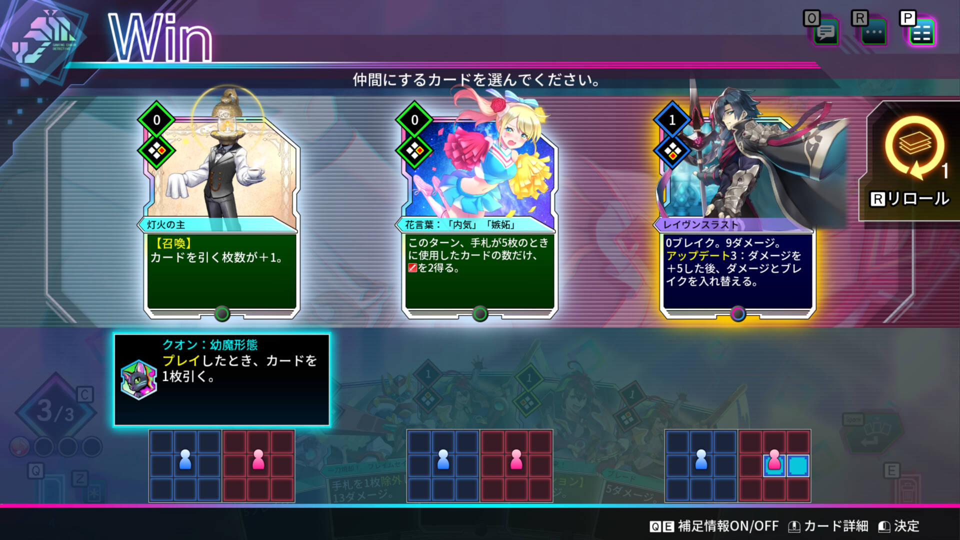 体験版のセーブデータは製品版に引き継げますので、カードを収集しておくと、製品版の攻略に役立てることができます。