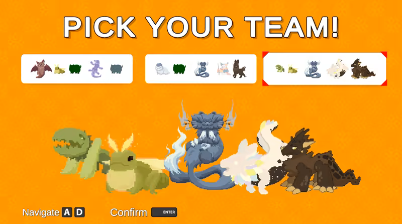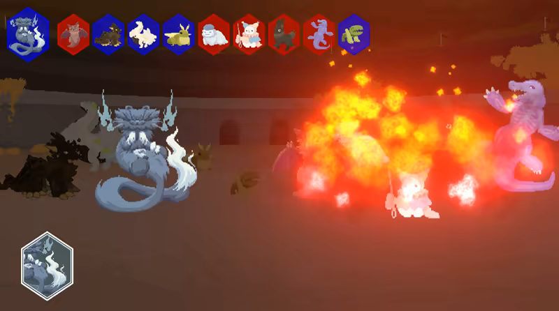Nakamon is a 2D pixel art creature fighter where strategy, speed, and tactical depth collide. Assemble a team of 5 unique Nakamon and dive into fast-paced 5v5 battles that will test your skills. With 16 distinct elemental types and up to 4 moves per creature, every battle is a fresh challenge full of strategic possibilities.