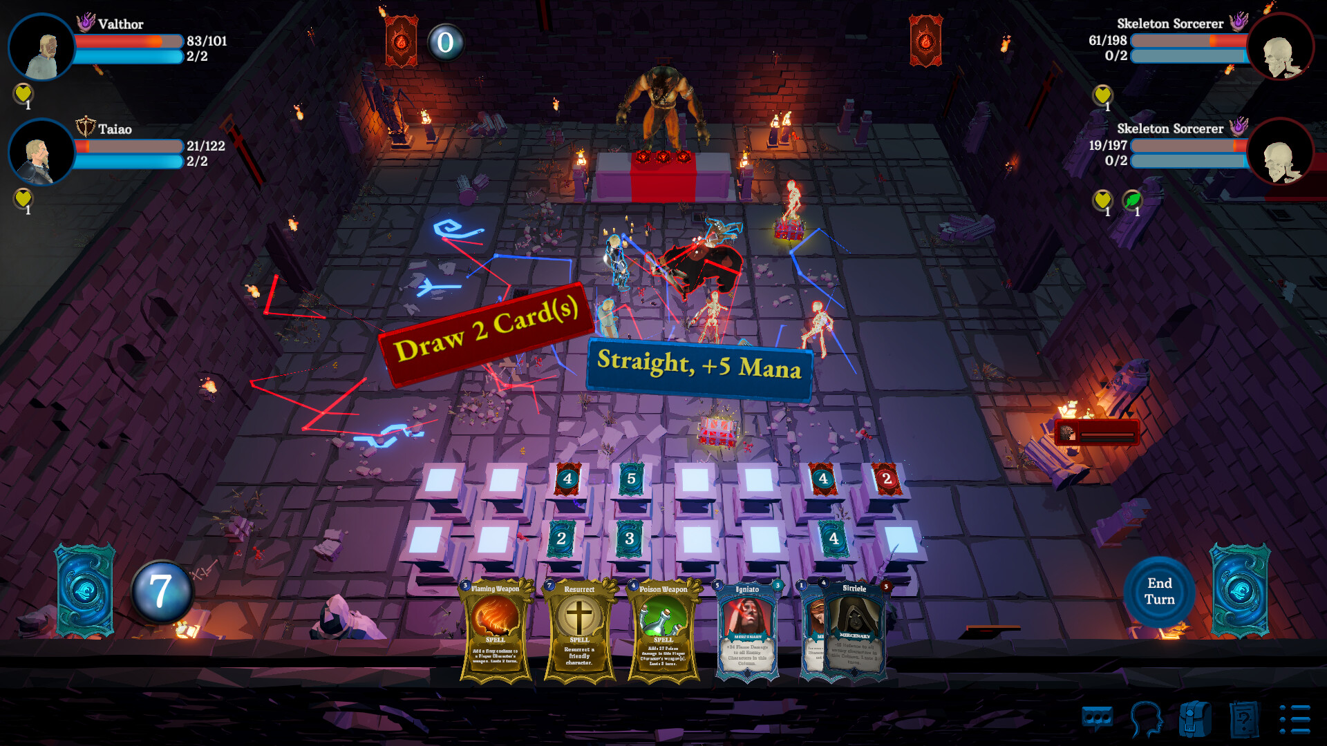 Form poker-style combinations called a 'Rune Combo' such as pairs, straights, and flushes to earn extra mana with which to unlock more cards, empowering your party to turn the tide of battle. Every duel is more than a clash of steel—it’s a contest against the Dungeon Master himself, with you as his opponent, that's two dungeon masters facing off.
