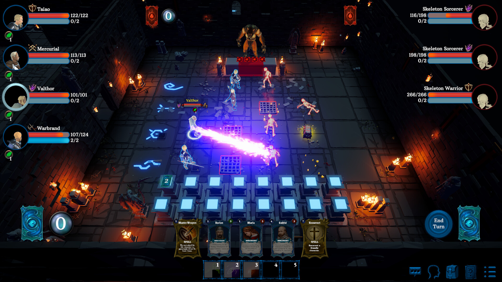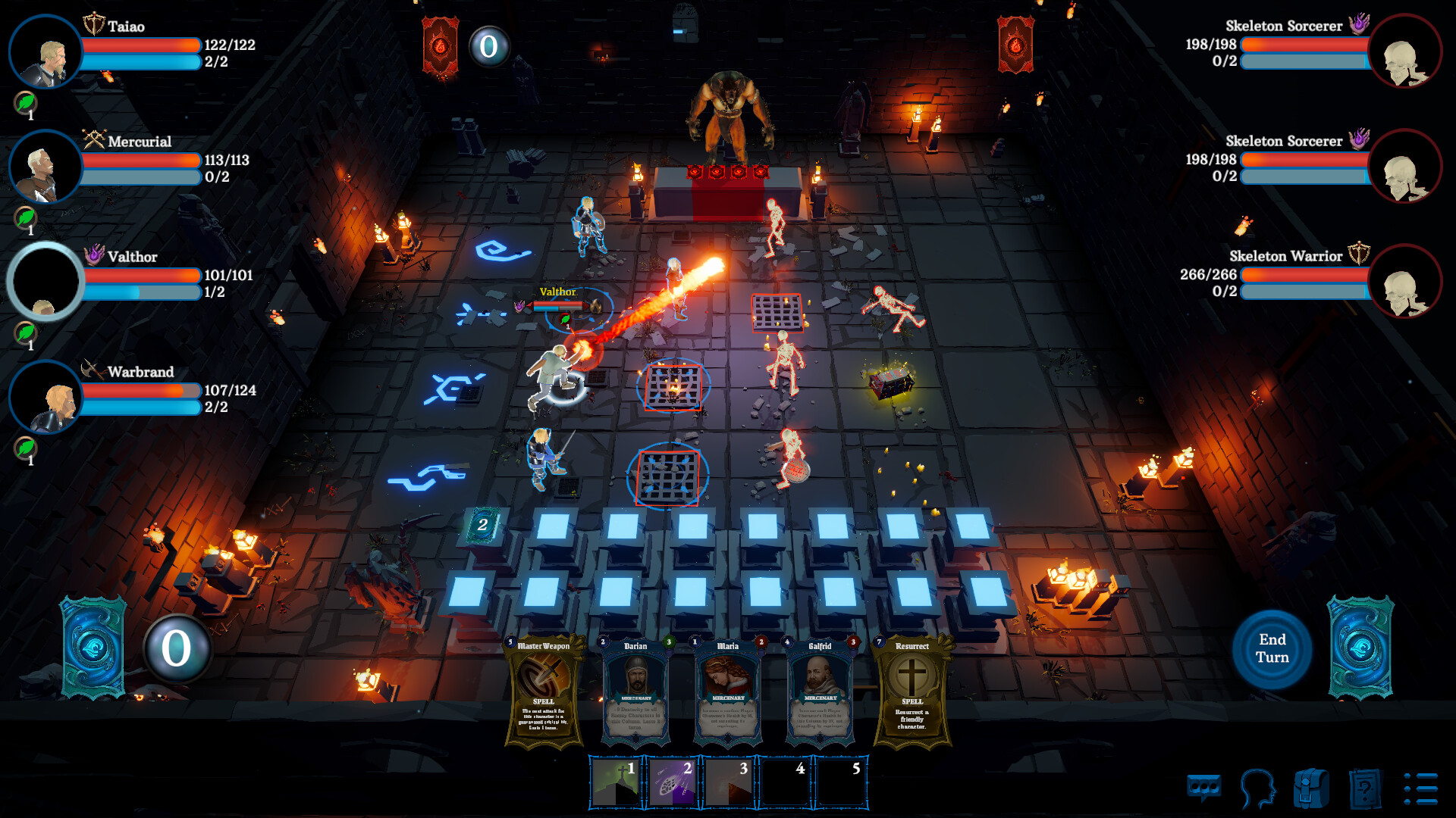 In this dark fantasy world, you command a band of mercenaries against the Dungeon Master who rules each cursed dungeon. Battles unfold on a grid-based battlefield where positioning, timing, and strategy are as important as the hand of fate you hold.