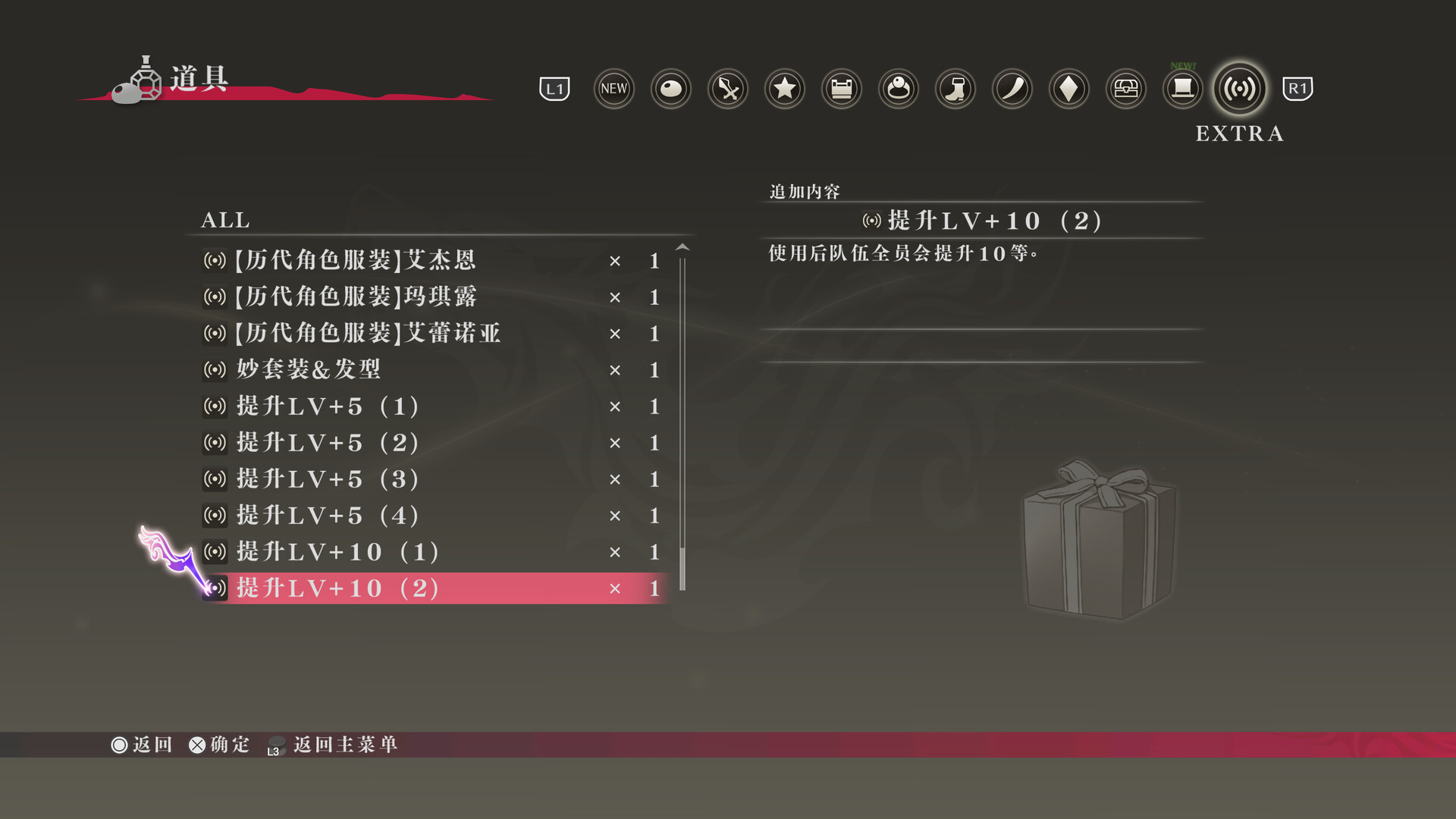 可以让我方全员的等级+10的“绯夜传奇 Remastered”游戏内道具。