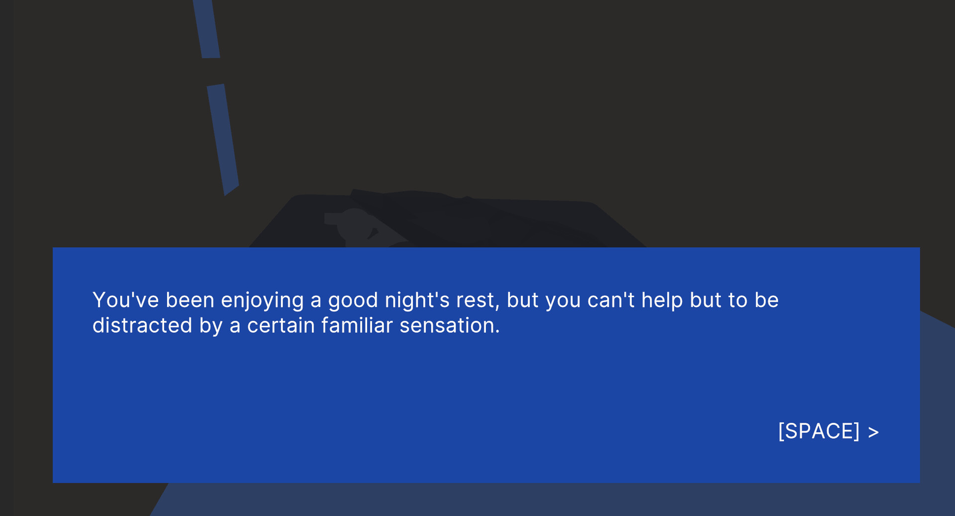 Can you collect the will to get up late at night? Will you choose manners over self-care? Can you overcome barriers that you weren't even aware might be present on your journey to the loo? Explore the consequences of every possible choice related to going to the bathroom, but with none of the real-life fallout.