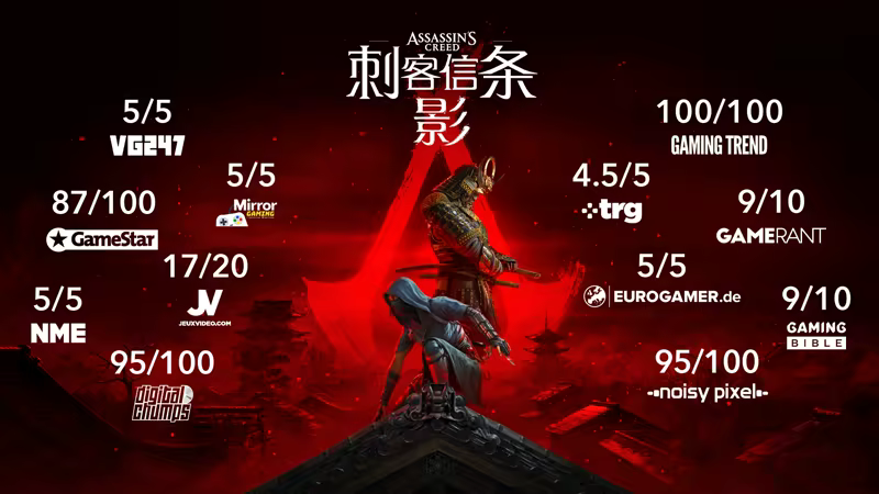 “《刺客信条:影》打造的开放世界类型实属一流。”——IGN