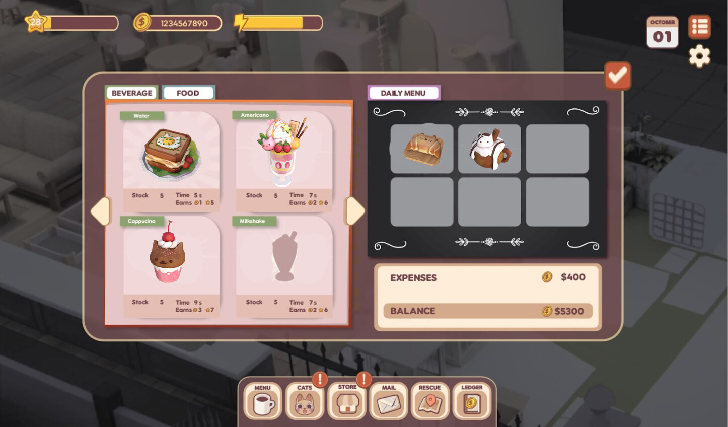 Enhance your café experience by upgrading your menu with delicious new food and specialty cat items.