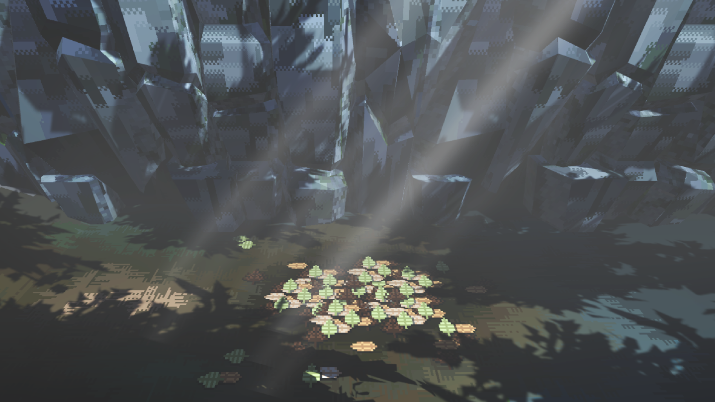 ・Use keyboard controls (WASD) to explore the pixel-art textured 3DCG terrain.