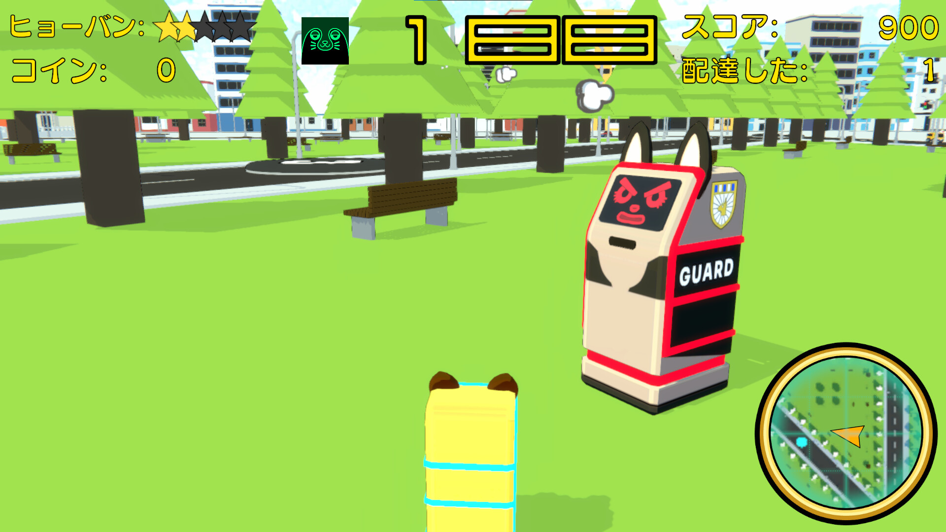 Be careful of the cars in town and the guard robots in the area. If you bump into them, your food will be damaged and delivery may be impossible! If you hit them, your food will be damaged and you may not be able to deliver it...