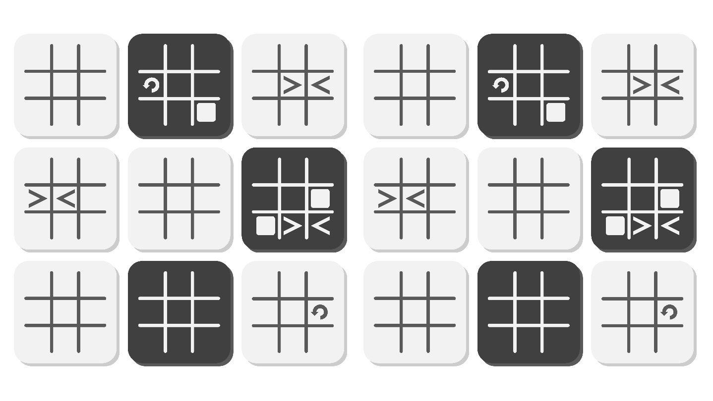 The goal is to change the color of all the tiles. Each tile has a 3 by 3 grid of icons inside it.