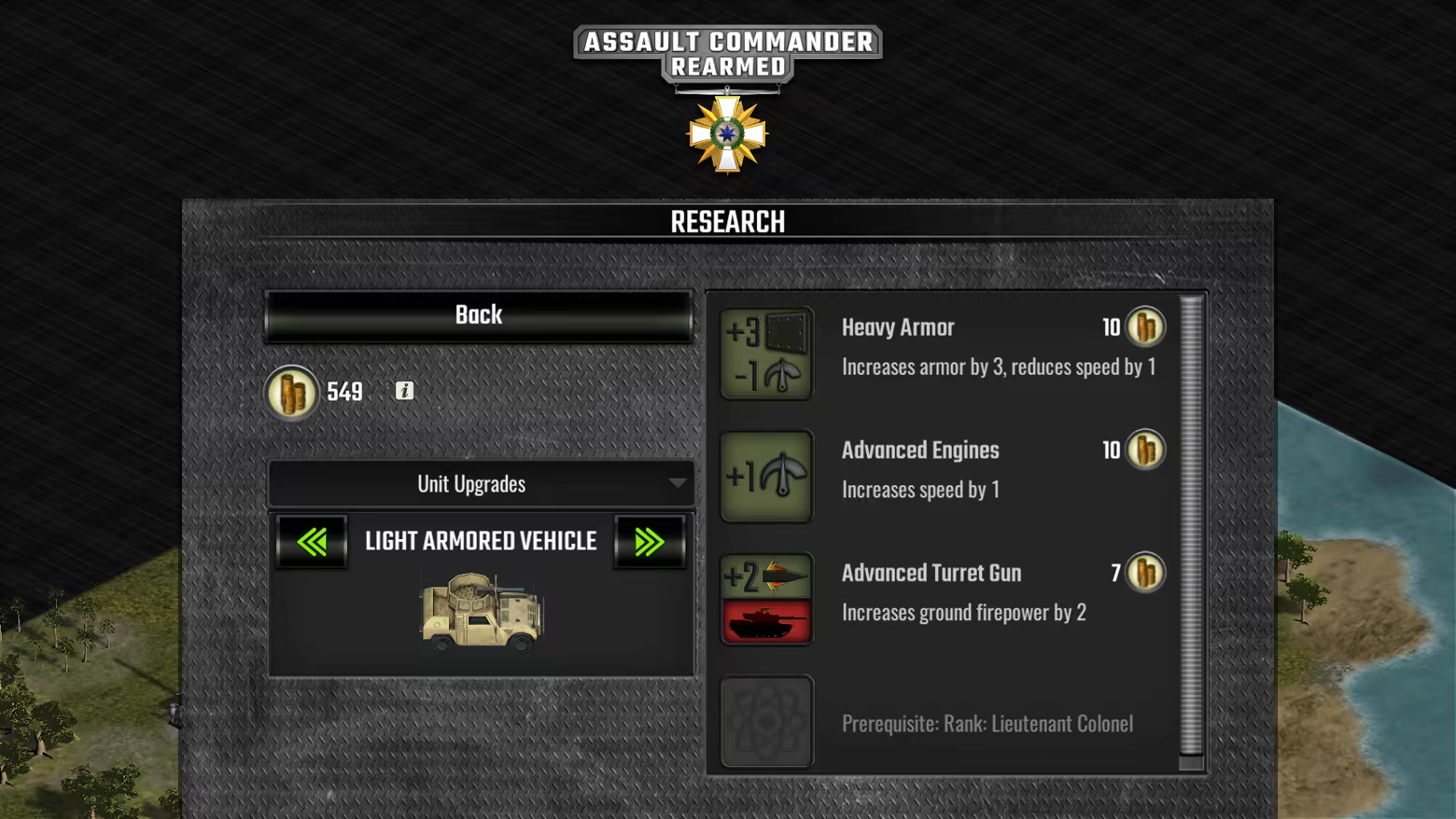 Assault Commander Rearmed is a turn-based military strategy game played on a hexagonal map. This game features isometric 3D graphics, a player profile system, research system, and improved artificial intelligence.