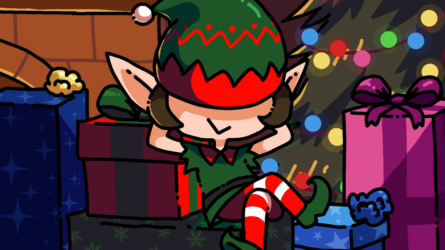 Using simple keyboard controls, play as Elfred the elf! Walk, jump, and crouch to traverse various rooftops, collect candy canes, and enter homes to deliver gifts and some extra holiday "cheer" in this short but sweet little trip!