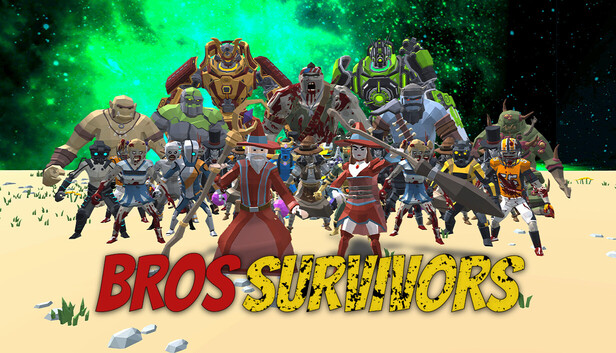 Bros Survivors is a 2-player co-op action roguelite where you and your friend must coordinate to survive hordes of zombies, orcs, golems, aliens, robots, and more. Combine powers, annoy each other, or fuse into a single entity to overcome every challenge.