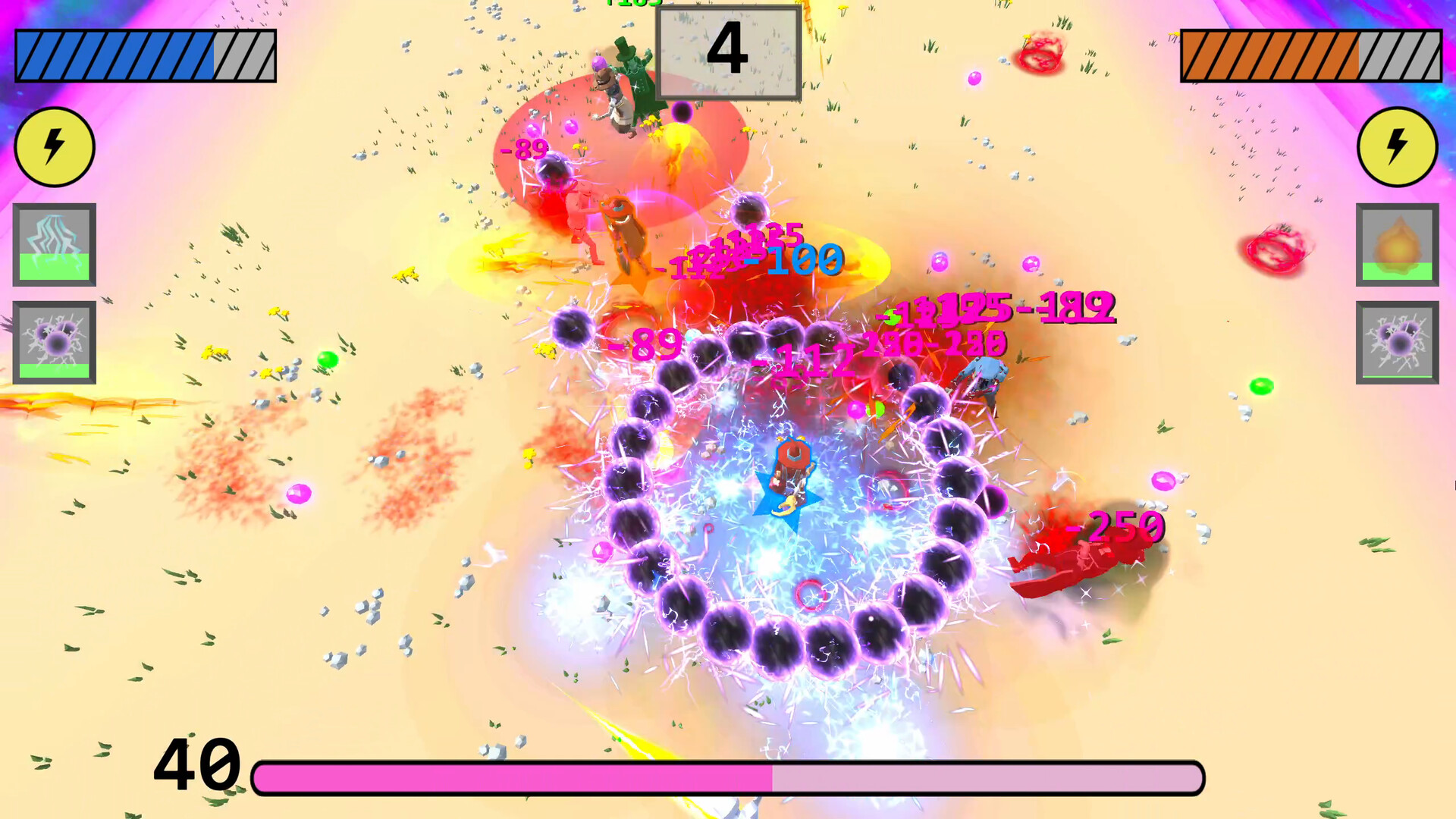 Bros Survivors is a 2-player co-op action roguelite where you and your friend must coordinate to survive hordes of zombies, orcs, golems, aliens, robots, and more. Combine powers, annoy each other, or fuse into a single entity to overcome every challenge.