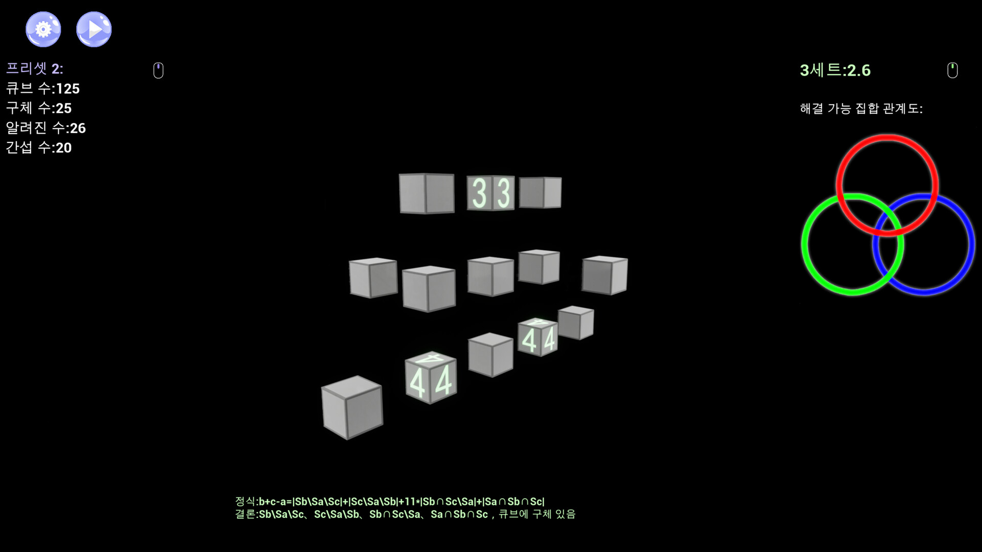 기본 규칙: 구체는 큐브 내부에 존재하며, 큐브는 감지 영역 내 최대 27개의 큐브(자신 포함) 중 구체의 수를 표시합니다. 구체가 없는 큐브는 숫자를 녹색으로 표시하고, 구체가 있는 큐브는 숫자를 빨간색으로 표시합니다.