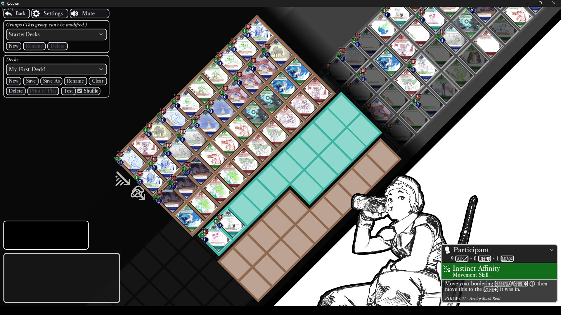 Welcome to Kyoukai ECG Online, the online client for the IsoRPG-inspired TCG! Kyoukai is designed to be a printed Card Game, has no mana resource, and no AI of any kind.