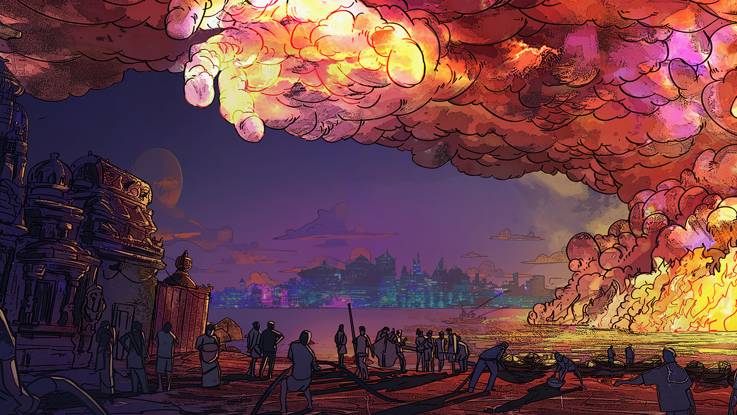 Narrative director Meghna Jayanth (80 Days, Sable, Horizon Zero Dawn, Thirsty Suitors) has worked intensely to build Muziris into a vibrant setting and keep the tone funny, sharp and deliciously absurd.