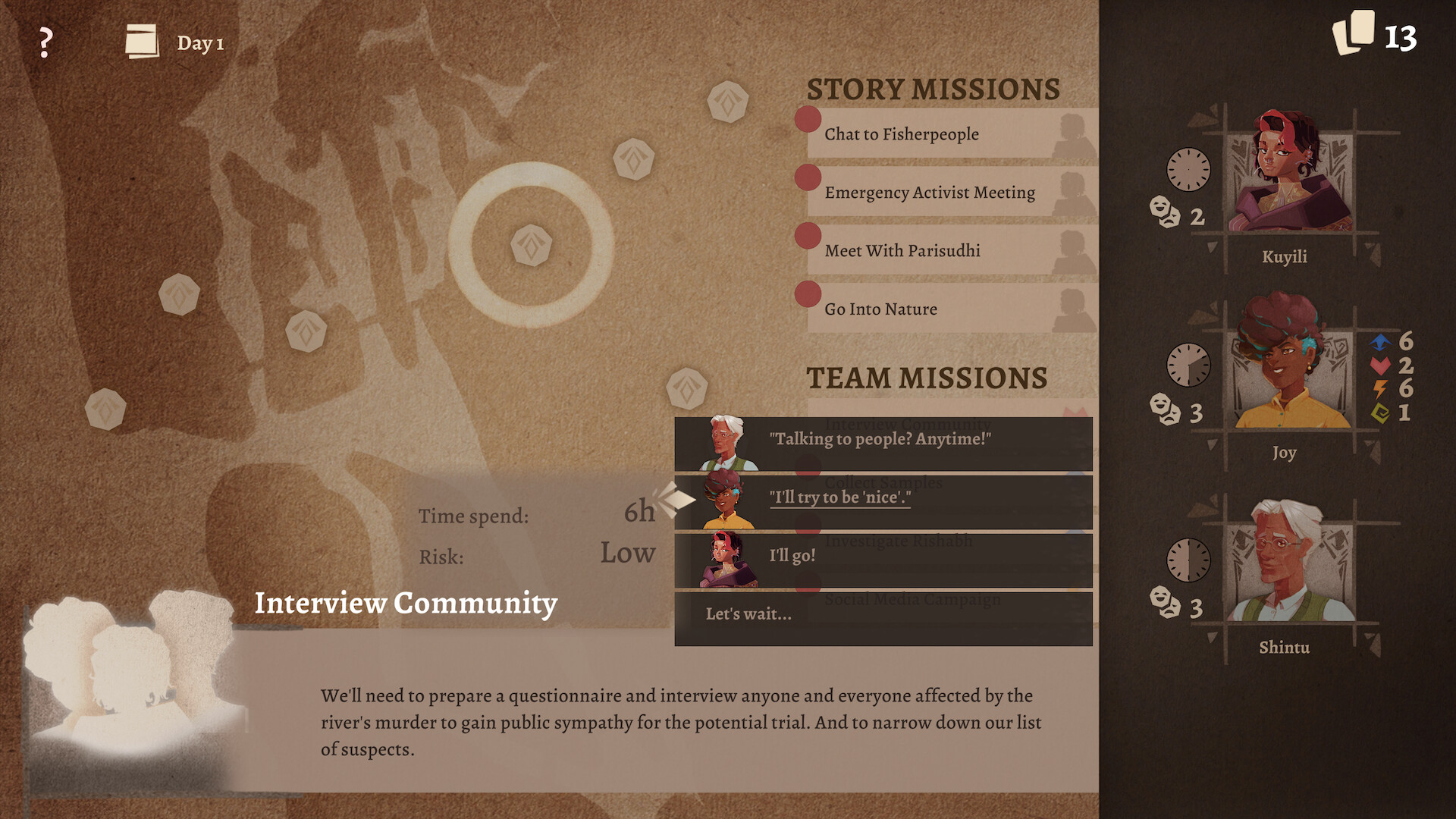 The river is a god, and they killed her. It’s time for ordinary people to hold them to account. Manage your team. Mix with ecoterrorists and godmen. Build your deck, follow leads and find allies. Make your case, and win the battle for the future.