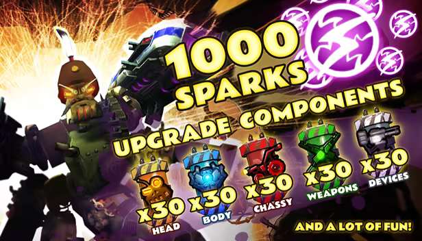 Guns and Robots Starter Pack is ideal for new robot-fighters who are looking to get a quick start in the action. This is special new player offer to get your hands on cool artillery, equipment and upgrades. In this pack you will get all upgradable component options: