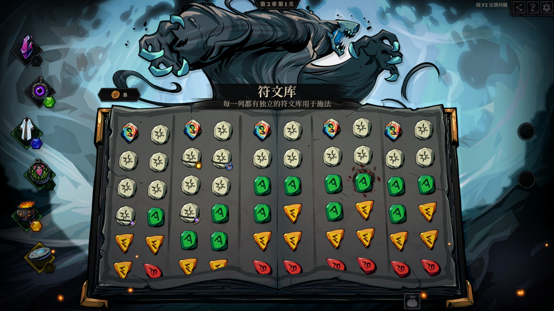 就像操控一台魔法驱动的老虎机。通过保留符文,重新随机等方式尽可能的连接更多同元素符文,打出高额伤害。