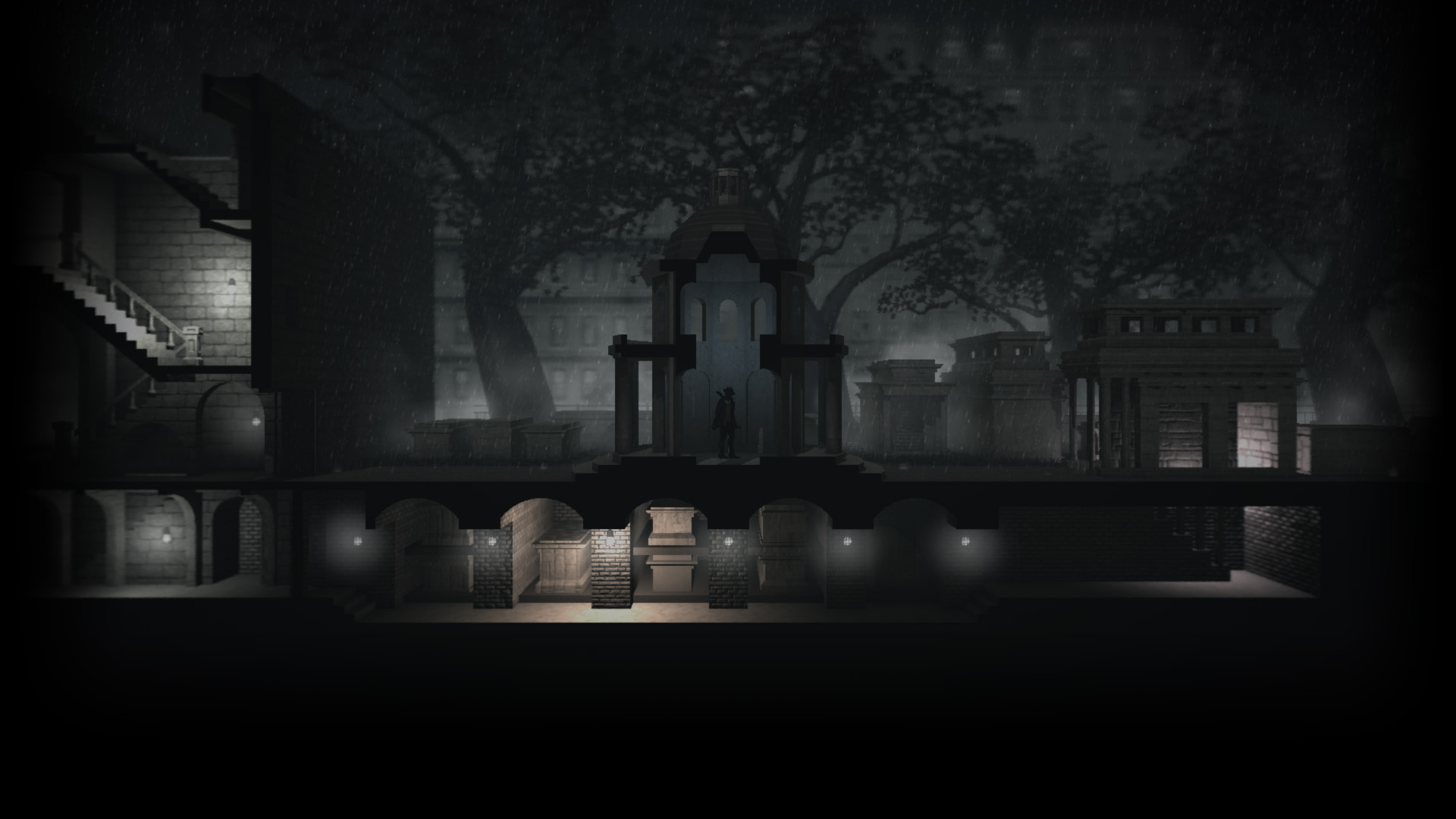 The film noir stealth game. Calvino Noir is the exploratory, sneaking adventure through the 1930s European criminal underworld. Architecture meets Noir as you become unwillingly entangled in a revolutionist plot. Sneak through sewers, across rooftops, and past guards in this dark and mysterious journey.