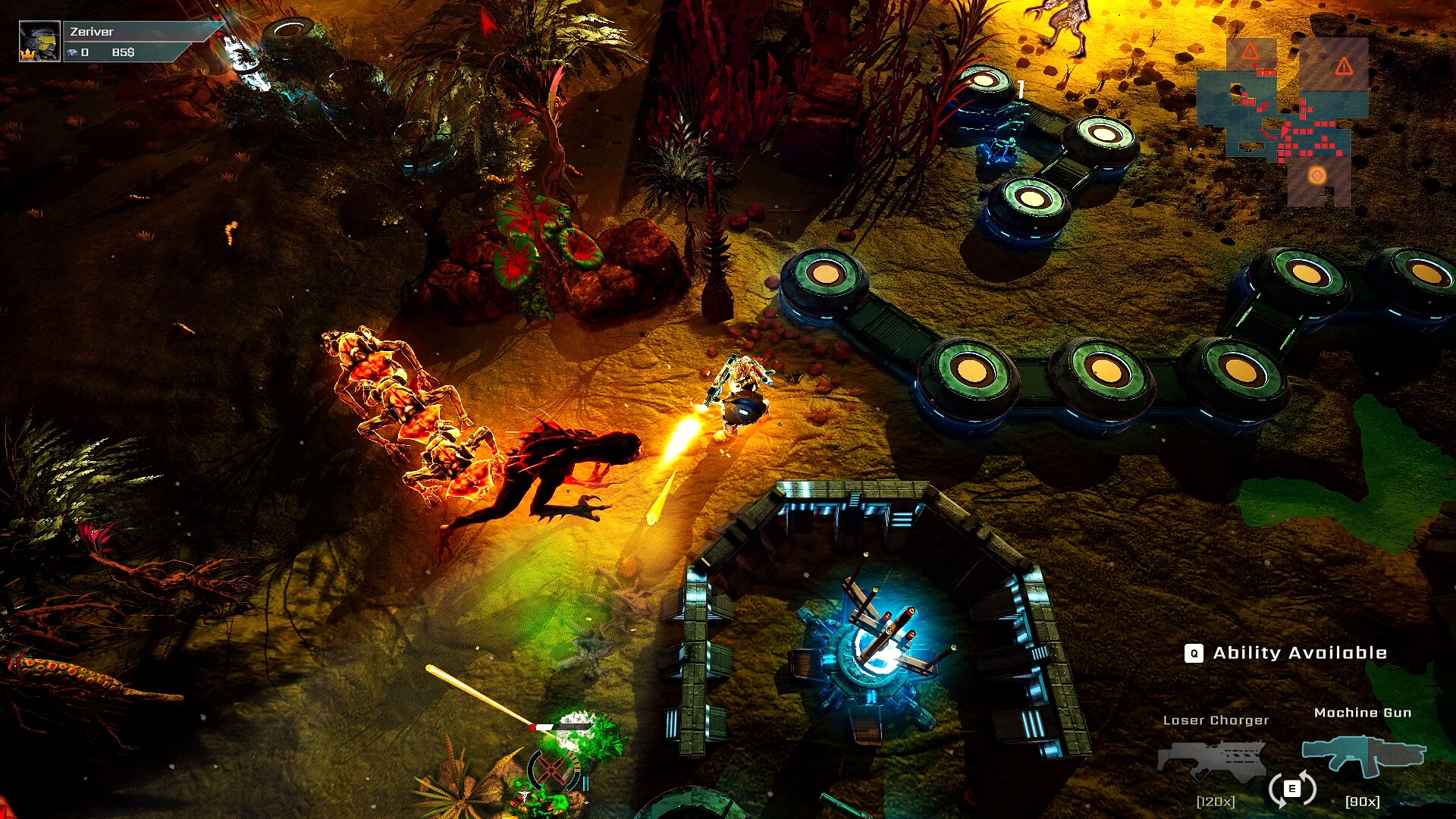 Use a variety of arsenal and build your base to repel waves of enemies.