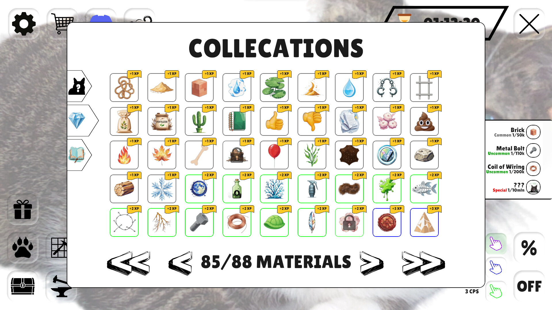 • Collect cats, items, talismans, cosmetics, materials, tools, and future weapon drops