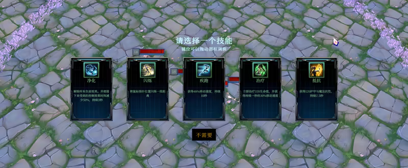 提供多种有助于生存的通用技能(召唤师技能),玩家可以灵活搭配,练习技能释放的时机与反应速度。