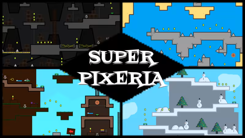 Super Pixeria is a 2D collectathon platformer with 100 waffles to collect across 10+ worlds! There are a variety of different locations and challenges, ranging from relaxing, simple objectives to challenging platforming gauntlets requiring determination to pass! Leap over spikes, dash across large gaps, and stomp on slimes as you follow the path to defeat the EVIL Mr. Pix!