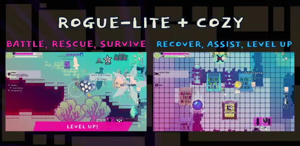 Word action means use words as weapons! Fight with words, rescue books. Survive nature dungeons, level up tending bookshelves in the library home base. Creatures are destroying the most powerful library in the galaxy. Become the last turtle guardian and help Portia the Book of Portals take on the foes who caused the catastrophe and stole all the books! Gentle rogue-lite with RPG and cozy elements, flexible input, and flexible difficulty.