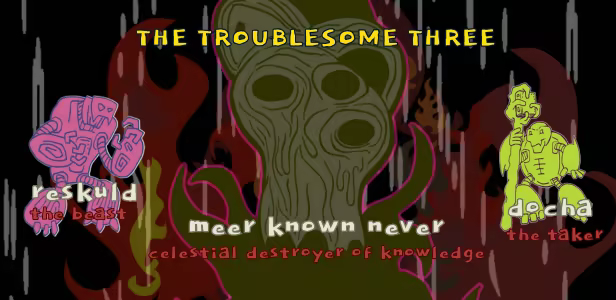 How did the most powerful library in the galaxy become a place of battle? One day, three troublesome creatures attacked the turtle's ultimate library. They caused the turtle-beings to mysteriously disappear, and captured the living books of power. Now the three bosses have sent their armies of creatures to finish their takeover of Word Turtle Island.