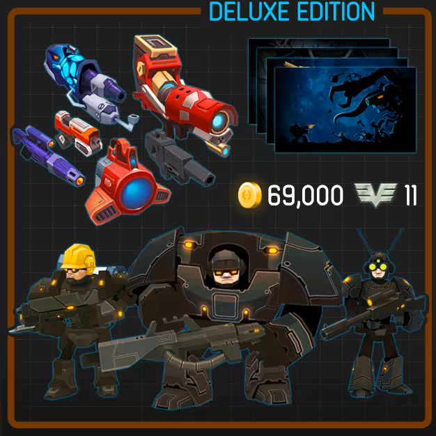 HEROCORP understands the needs of the more discerning battle commander, hence the Deluxe Edition of OTTTD. In addition to everything in the pre-order, you'll get the Deluxo weapon and armor sets. Recently developed by our Lab Division, the Deluxo Range gets more powerful each time your soldier levels up, making it worth its weight in requisition forms. We'll also throw in a Deluxe Wallet, with 69,000 coins and 11 medals to buy yourself something nice.