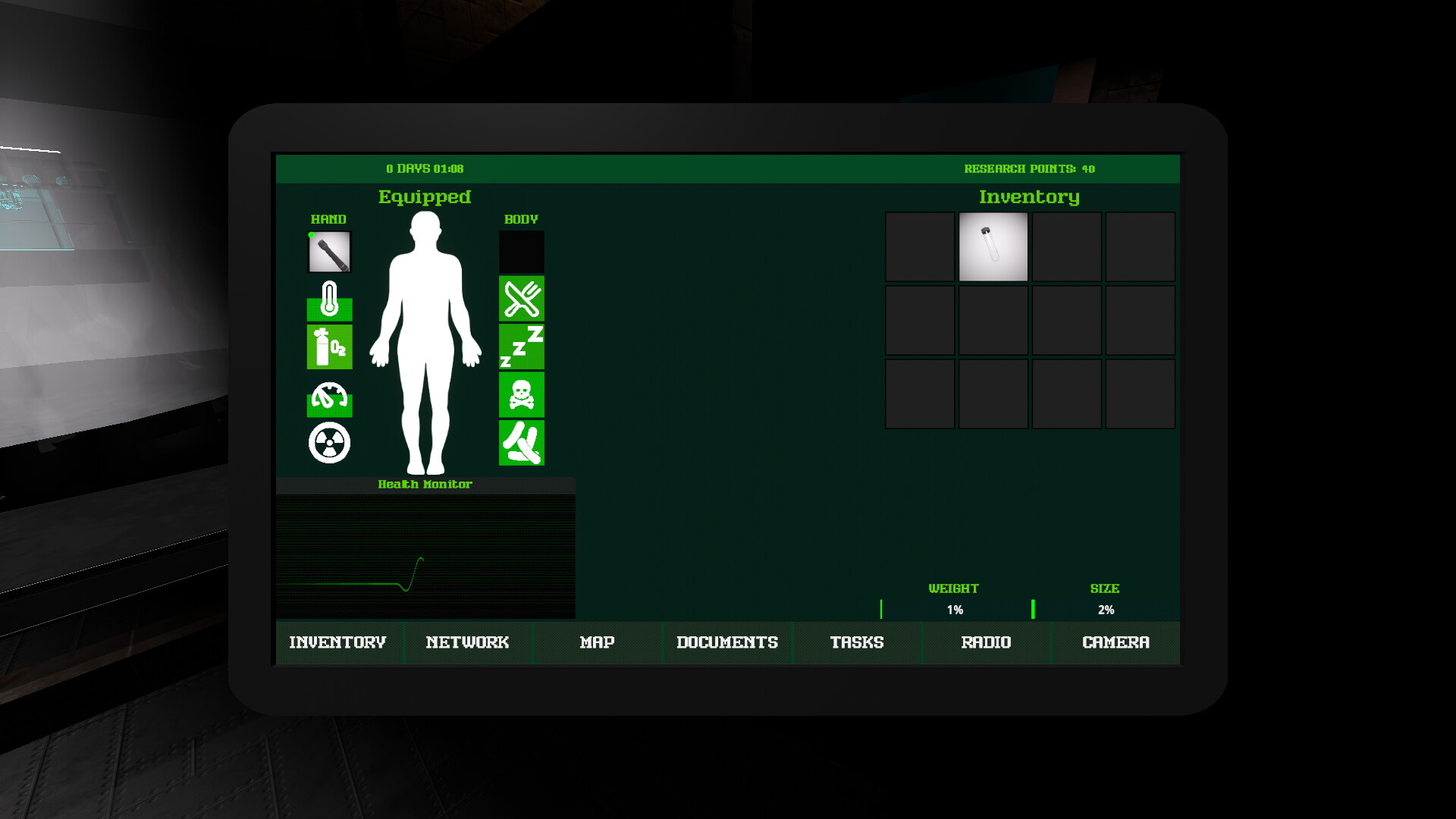 • Interact with the neutrino observatory: Monitor its readings, analyze its data, and uncover a potential connection between its operation and the base's dark history.
