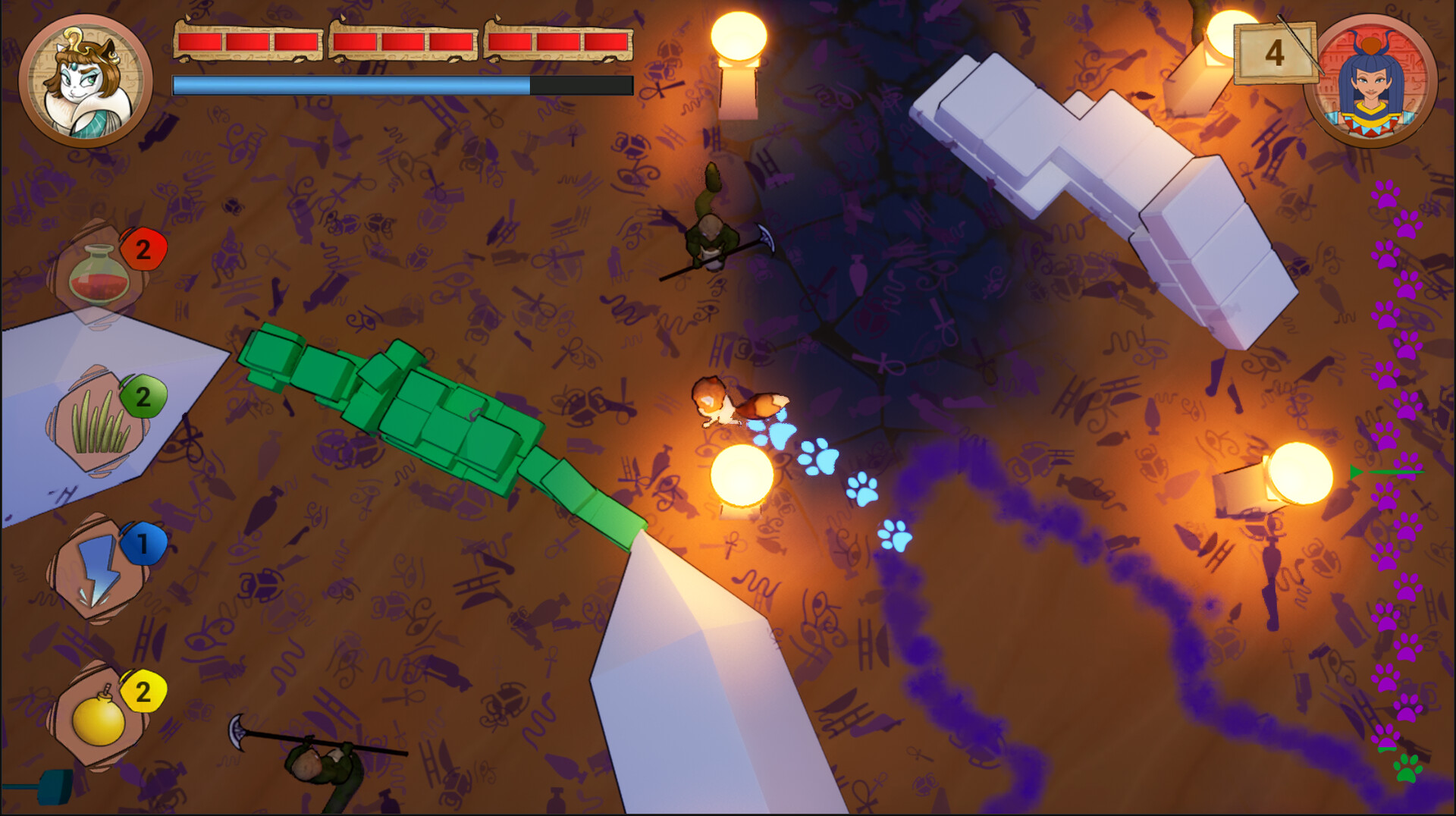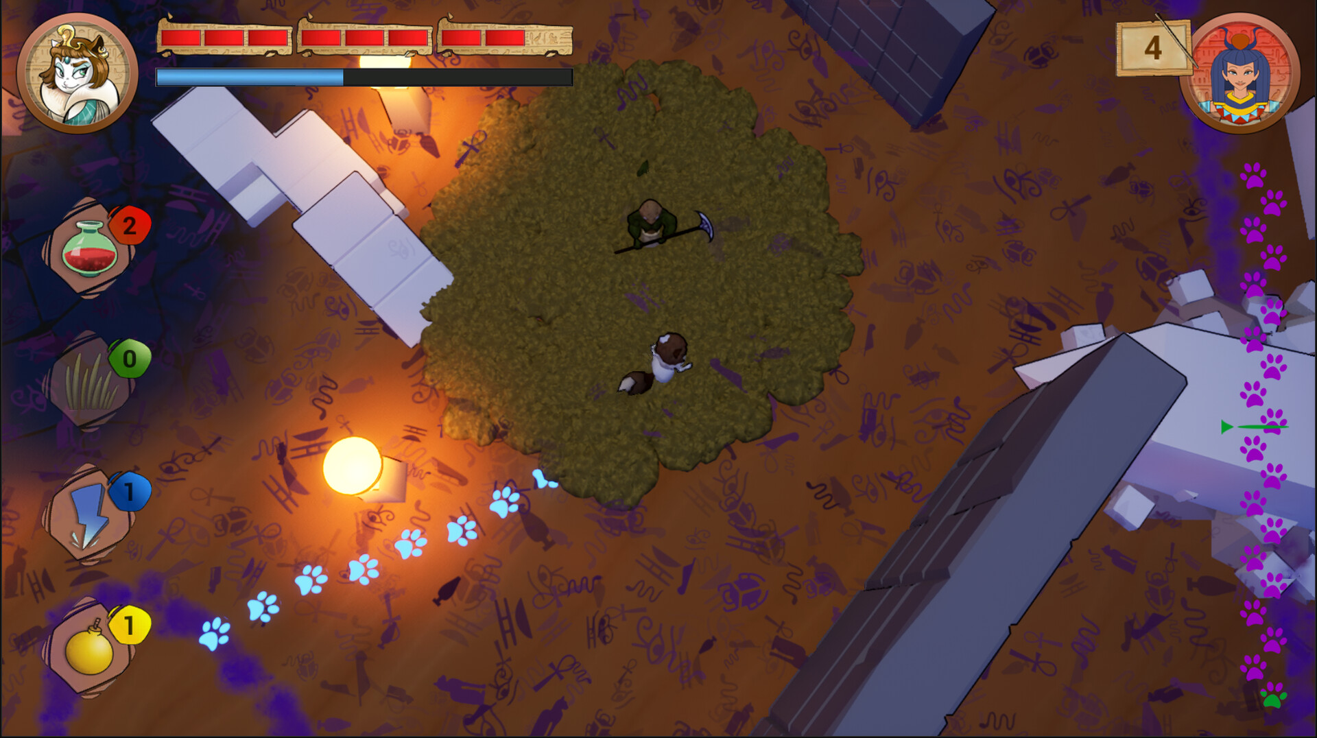 In this free version of the game, there are two playable Temples (of the Godesses: Nephthys and Isis). Many more coming in the full version, along with: better management/progression of your abilities; special levels; and an original soundtrack.