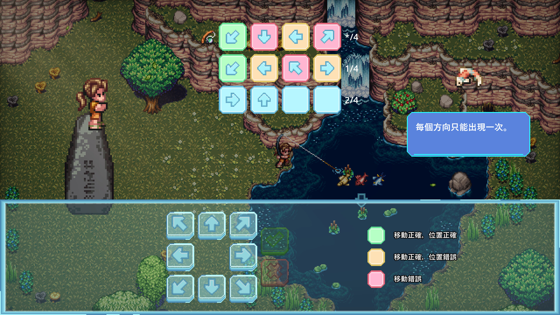 每個謎題都包含來自 8 個方向的移動序列。請在有限的機會中找出正確的移動。