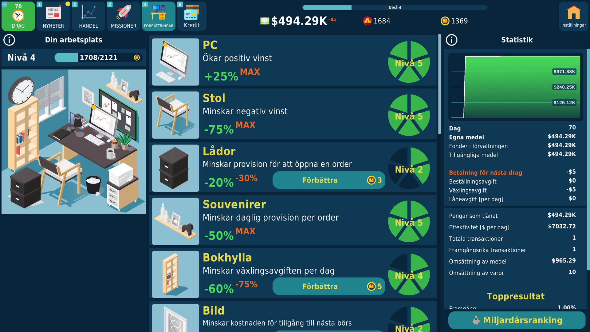 Kompetenta investeringar kommer garanterat att löna sig. Stock Exchange Game har ett unikt hanterings- och nivåhöjningssystem, som gör att du effektivt kan använda dina kunskaper och färdigheter.