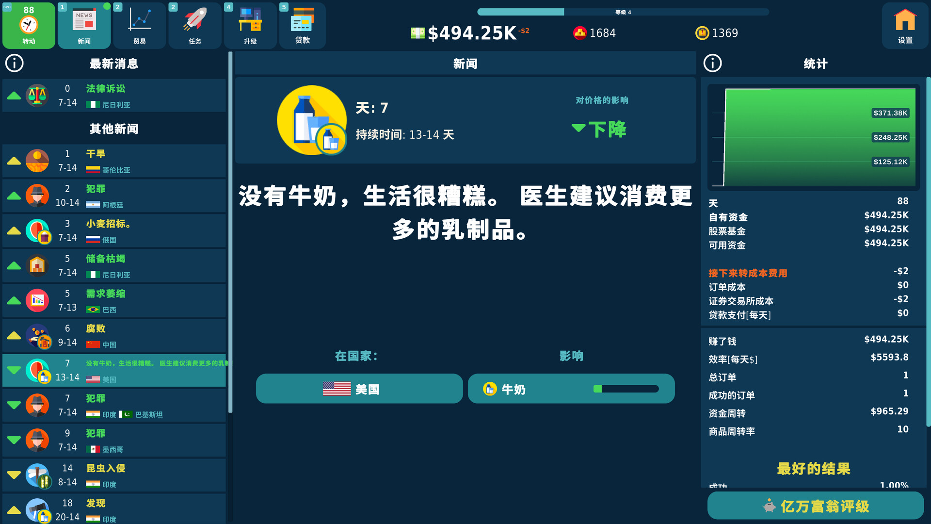 股票交易游戏是世界上唯一的虚拟交易游戏,基于数千个世界事件:分析金融新闻及其对报价的影响。