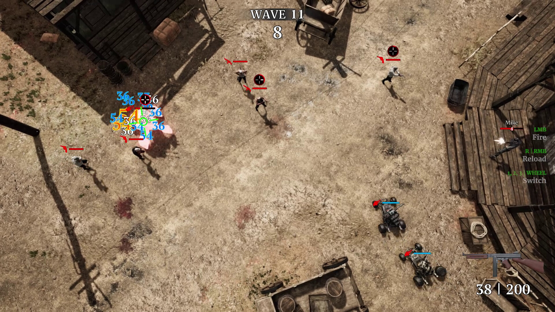 The bandits rushing in, My favorite saloon, A sheriff holding guns that fight alone for tomorrow's whiskey..! To fight desperately against overwhelming offensive until final boss defeated, upgrade weapons and get abilities!