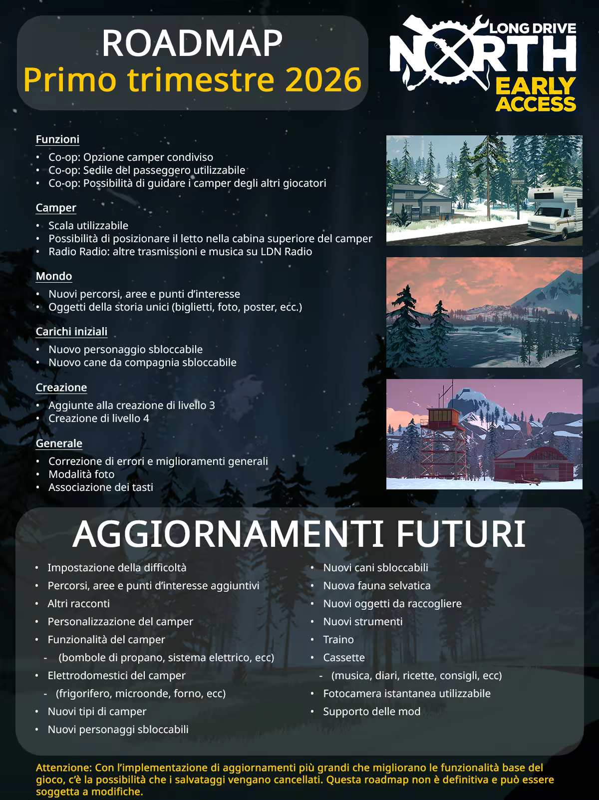 “Stimiamo che Long Drive North resterà in accesso anticipato per 18-24 mesi, in base al feedback e ai suggerimenti della community.”
