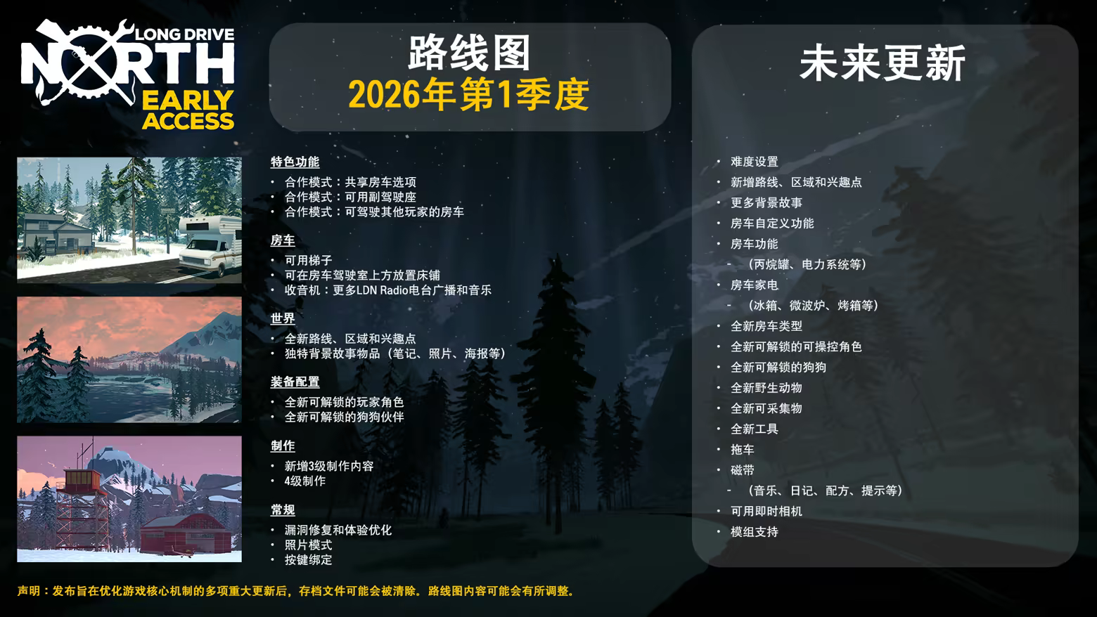 “我们预计《Long Drive North》会在未来18-24个月内依然保持抢先体验状态,具体根据玩家群体的反馈和建议确定。”