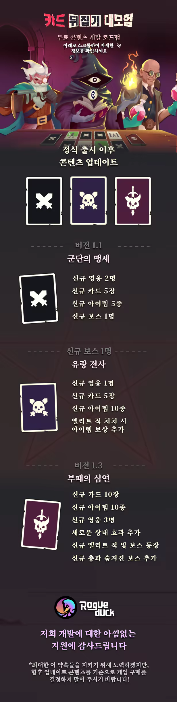 카드를 뒤집고, 적을 물리치세요!《카드 뒤집기 대모험》는 로그라이크 요소를 결합한 던전 탐험 게임입니다. 카드를 매칭하여 적을 공격하고, 함정을 피하며, 덱을 구성하세요. 던전을 깊이 탐험할수록 더욱 강력한 적과 보스가 당신을 기다리고 있습니다. 신중하게 카드를 뒤집으세요!